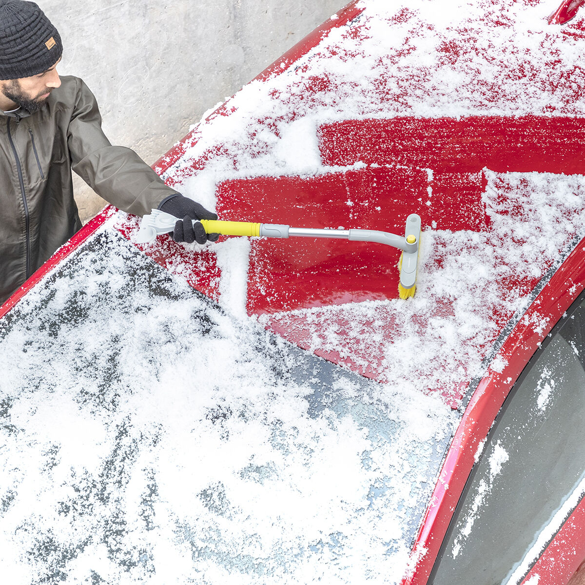 its bristles won’t damage surfaces. The flat ice scraper is ideal for