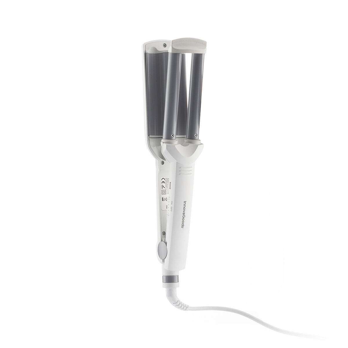 A hair iron with an innovative triple bar design, an ideal shape for styling waves with total ease and convenience for achieving optimal and professional results. It enables you to create wide, marked and defined waves for a special occasion or soft waves for a natural daytime looking seconds. The PTC technology makes the iron heat up quickly (it reaches maximum temperature in just 2 mins) and lengthens its durability. It has 3D ceramic plates that don’t harm the hair and create less friction, thereby reducing snags and pulls. The heat is distributed evenly at a constant temperature (200 ºC) and provides complete protection for the hair. The cable can revolve 360º and is extra long, with a length of 180 cm, to make the iron easier to use. It has an on/off button and an LED indicator to show it is switched on. This hair iron has a power of 55 W, is lightweight and compact and includes instructions for use.