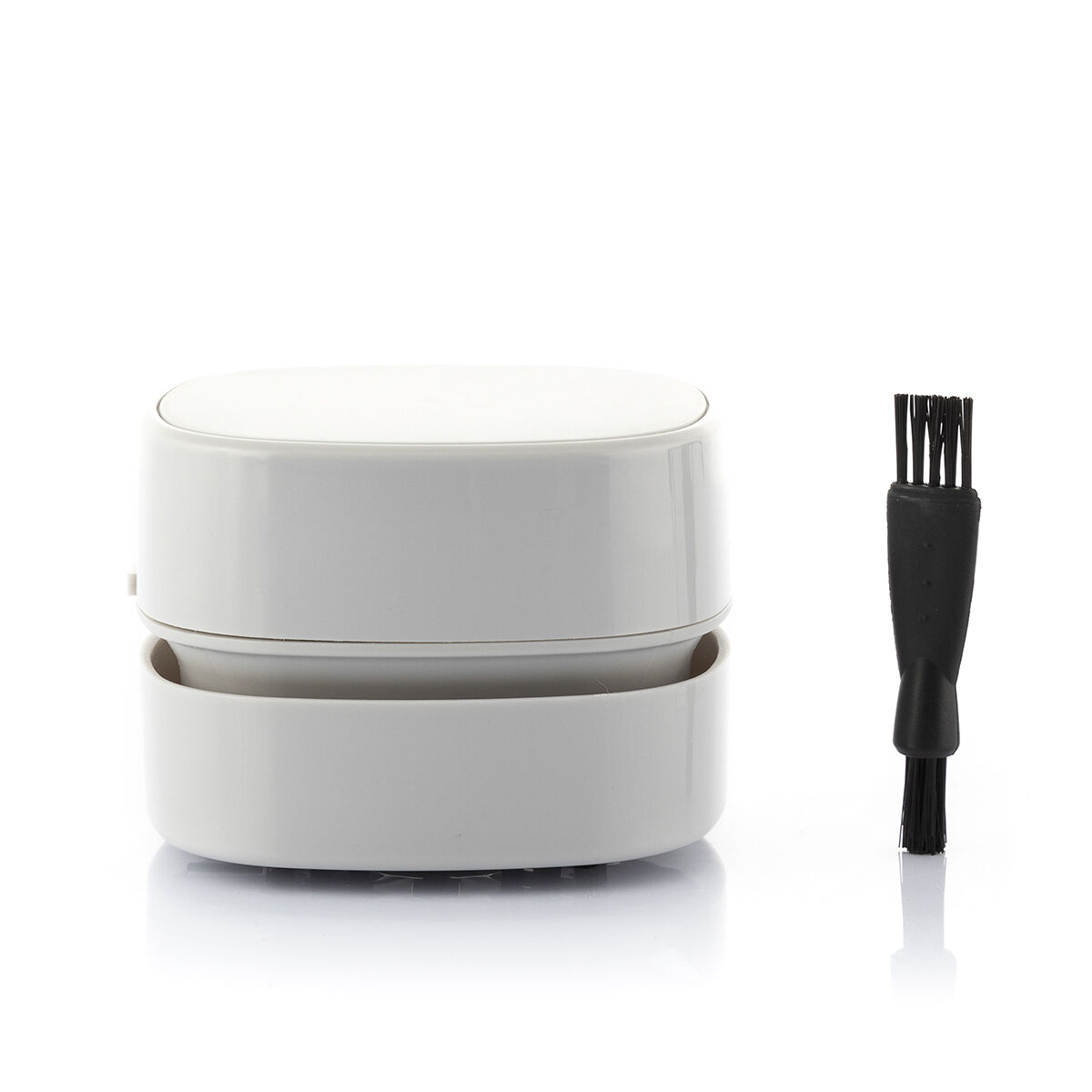 A mini hand-held desk vacuum cleaner which is very convenient and efficient for cleaning, as it sucks up all types of materials: erasers, bits of paper, keyboard dust, breadcrumbs, ash, pet hairs, etc. It has small brushes in the base to facilitate cleaning. Its discrete and compact design enables you to keep it on the desk as another element of the decor. It can also be used for cleaning in the kitchen, the car, keyboards, etc.