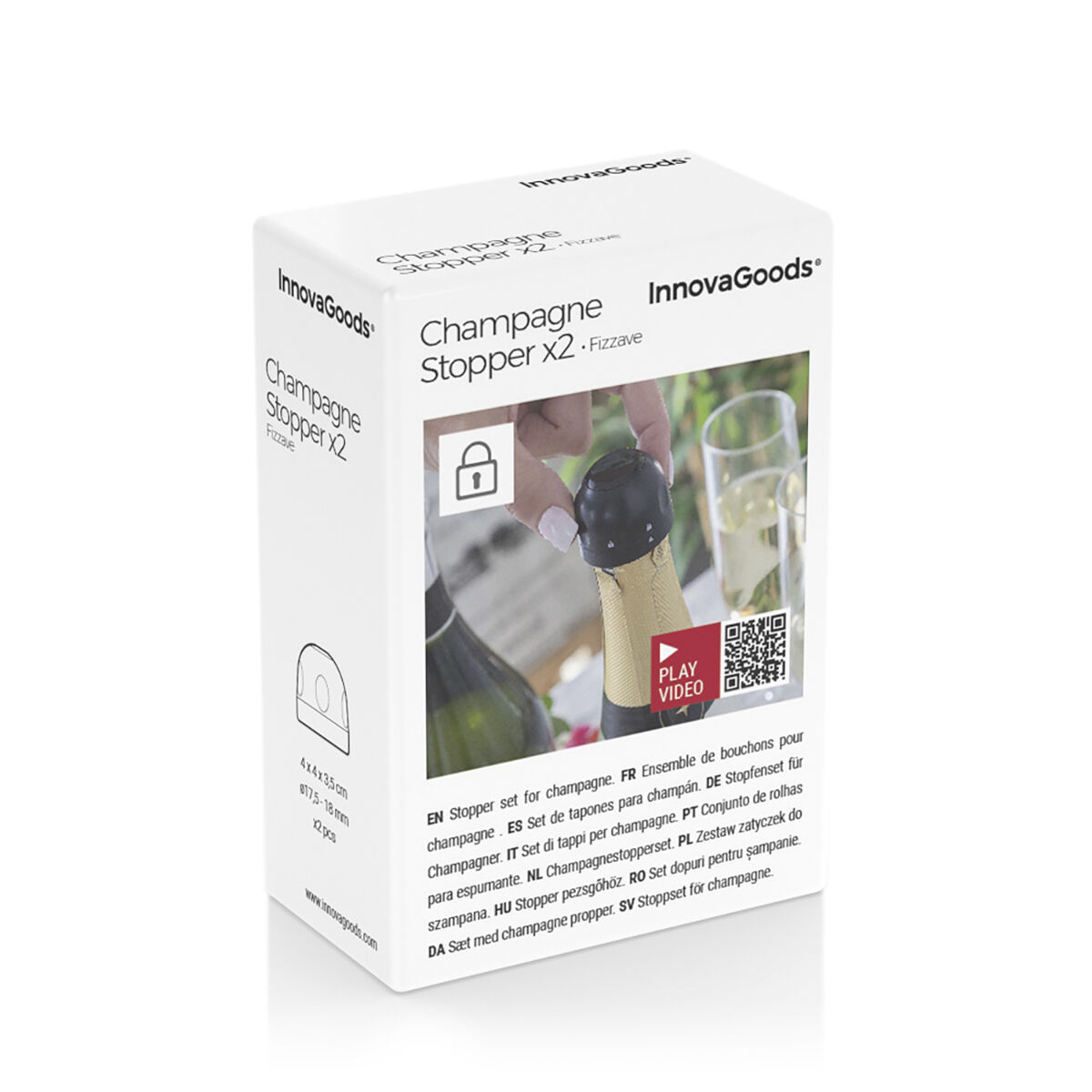 A set of 2 champagne bottle stoppers with a modern and elegant design which enable you to hermetically seal the bottles. Its easy sealing system prevents the drink from losing its fizz, preserving the contents of the bottle for longer, as if it had just been opened. It is very easy to operate. Firstly, turn it until the arrow meets the open padlock symbol and then insert the stopper fully into the neck of the bottle. To activate the sealing lock, simply turn it so the arrow meets the closed padlock symbol. To remove the stopper, turn it again towards the open padlock symbol. This original stopper has been designed for sparkling drinks and champagne, cava and prosecco-type bottle necks (17.5-18 mm). The sealing lock does not work on wine bottles or other bottles with different necks to those it was designed for, although it can also be used as a conventional airtight stopper on these other bottles. It is also ergonomic, as it has different grip areas and its shape is adapted to the fingertips for a more comfortable use. It provides a firm hold and prevents drips and spills.